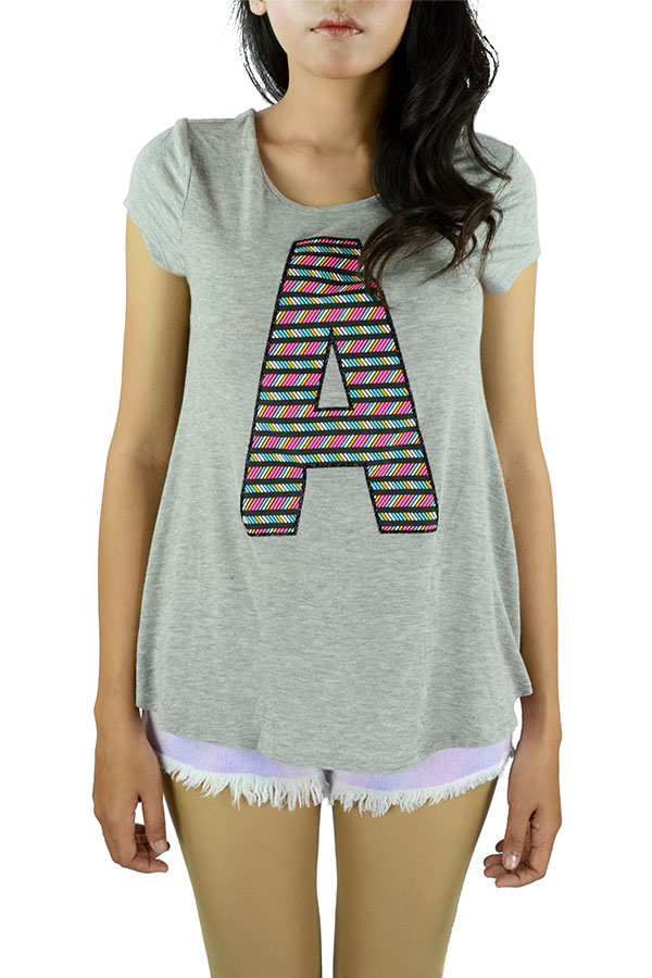Women's Top T Shirt Alphabet A